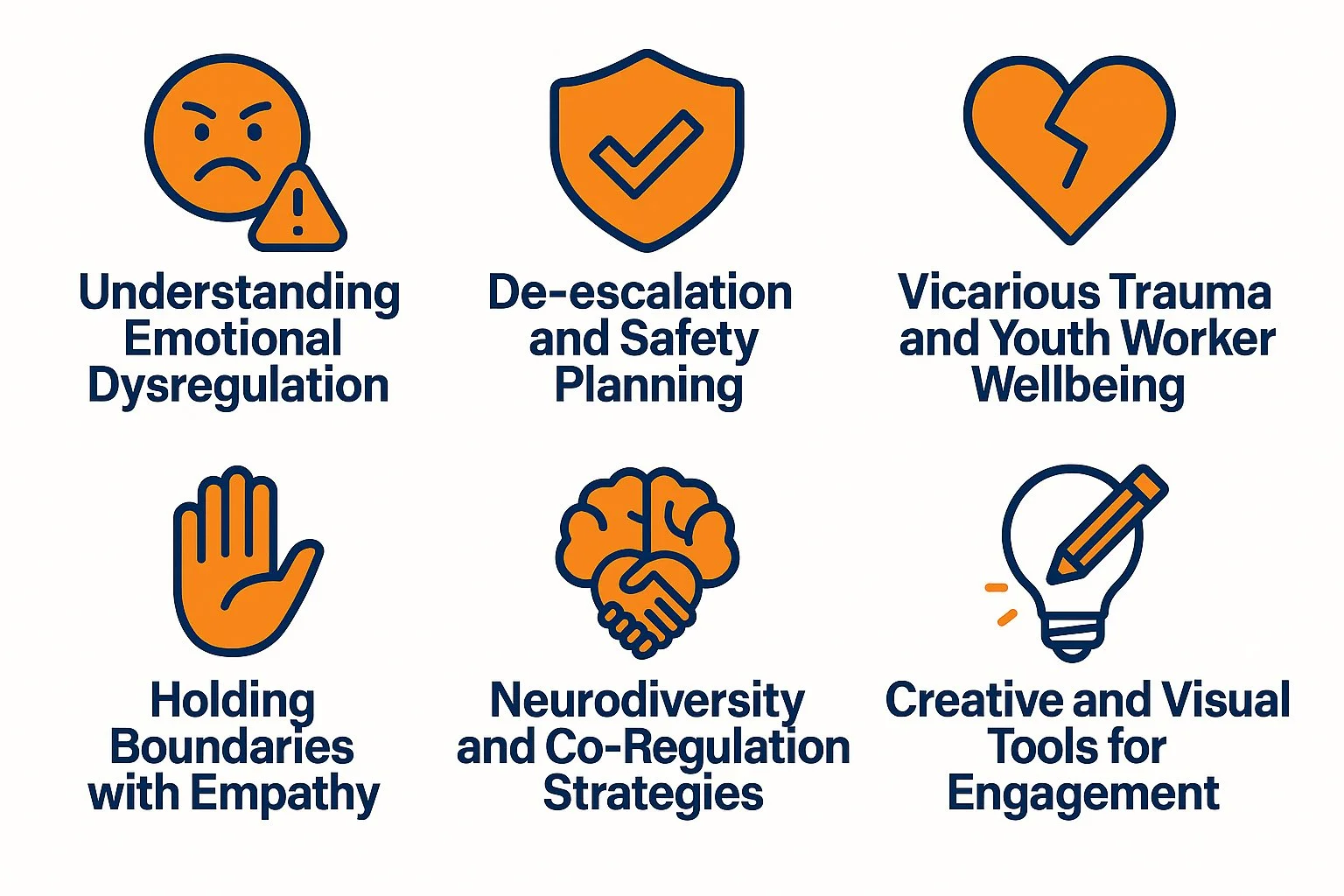 Our 6–7 core sessions focus on the real challenges and opportunities of working with young people in community spaces, parks, estates and shared environments: